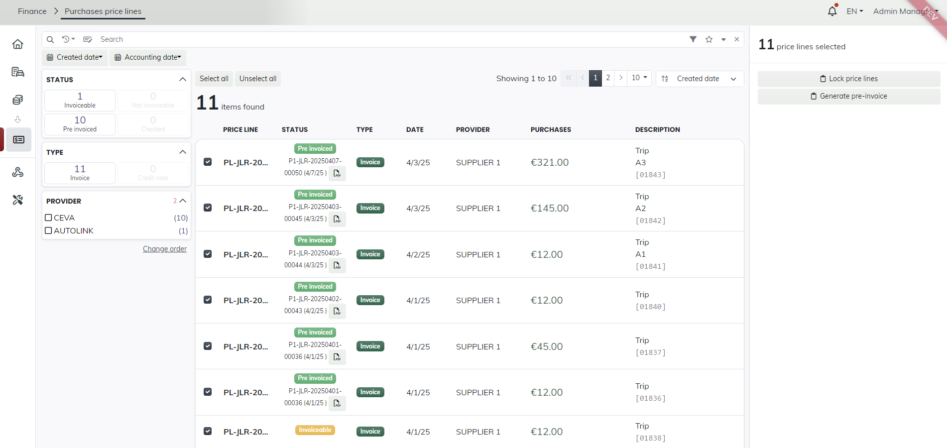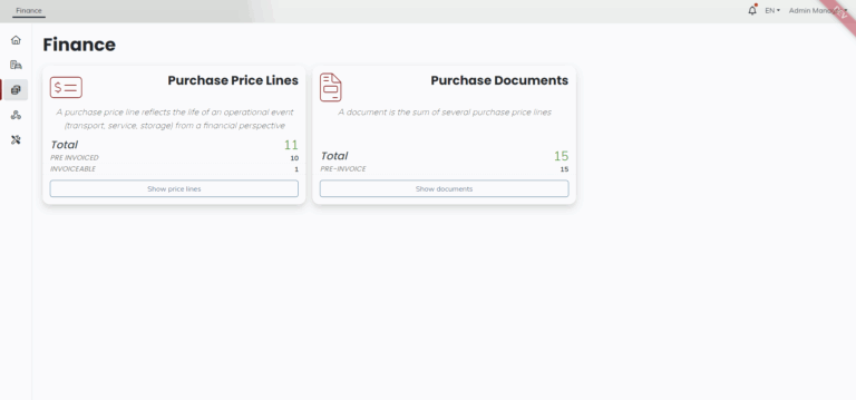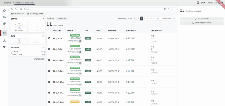 • Purchase-to-Pay Automation — Manage purchases for both transport and compound services, including handling, storage, PDI, workshops. Generate pre-invoices automatically after service completion and documentation received