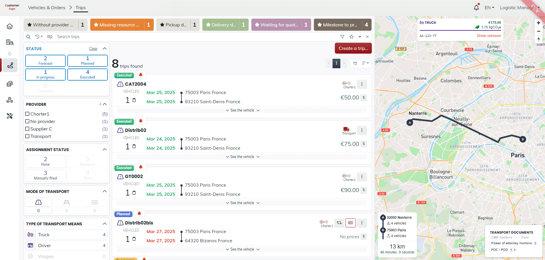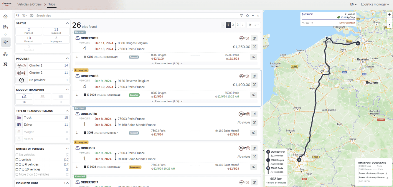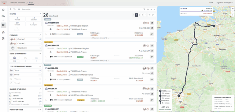 • All transport documents in full digital — Direct access eCMRs, inspection and damage records, photos, and more—all online.