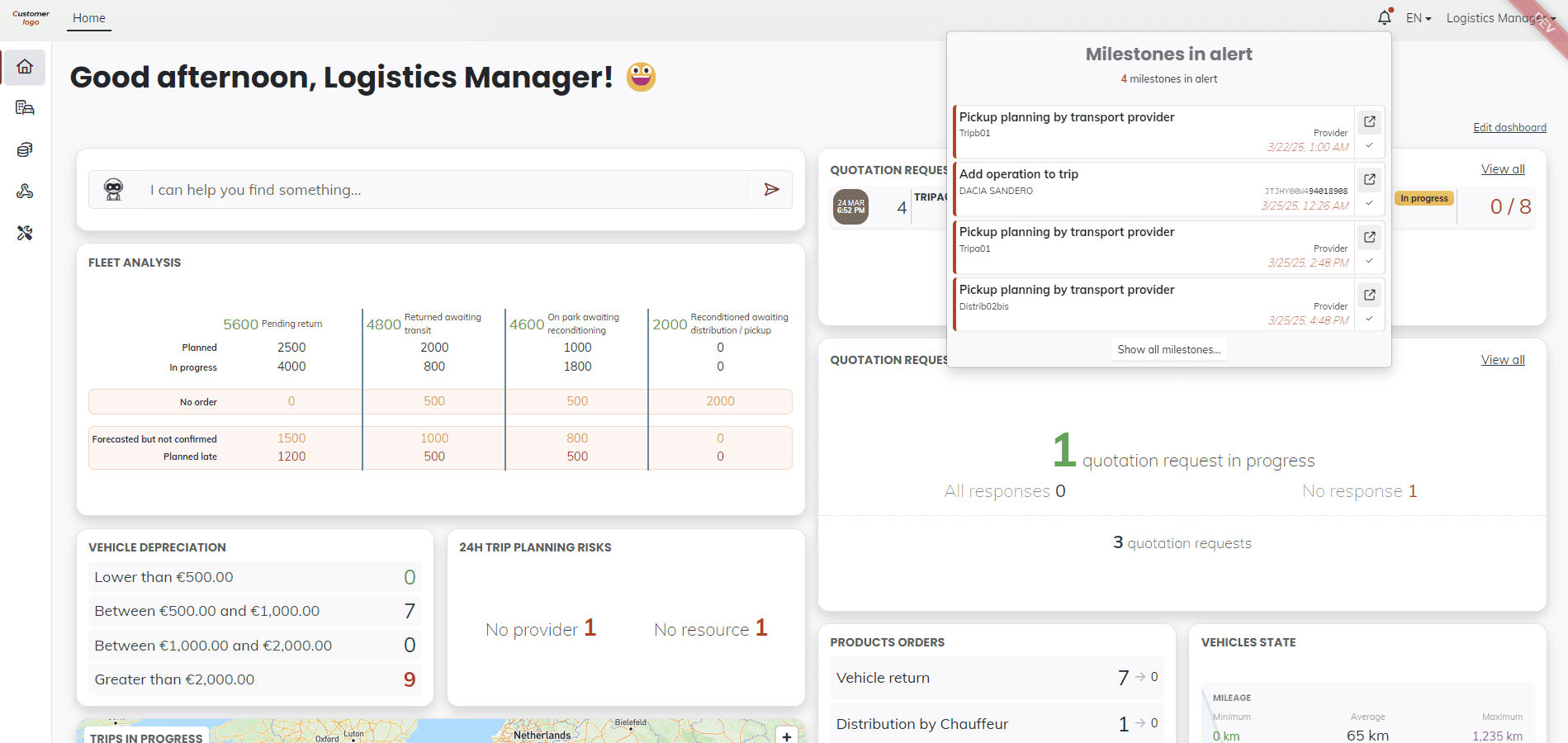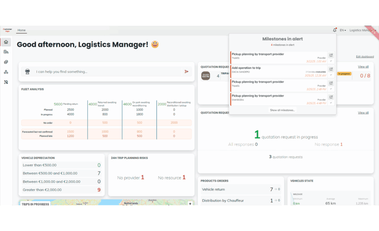 • End-to-End Operations Planning — Manage everything from transport orders and trips to services such as Pre-Delivery Inspections (PDI) and maintenance seamlessly. Our tool ensures thorough planning and efficient execution.